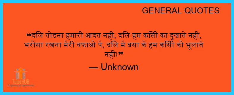 दिल तोडना हमारी आदत नही, दिल हम किसी का दुखाते नही, भरोसा रखना मेरी वफाओ पे, दिल मे बसा के हम किसी को भूलाते नही।