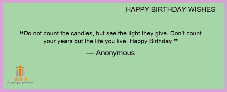 Do not count the candles, but see the light they give. Don’t count your years but the life you live. Happy Birthday.