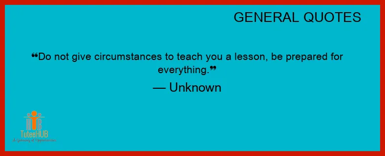 Do not give CIRCUMSTANCES to TEACH you a lesson, be PREPARED for EVERYTHING.