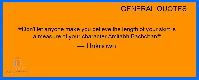 Don't let anyone MAKE you BELIEVE the LENGTH of your SKIRT is a measure of your character.Amitabh Bachchan