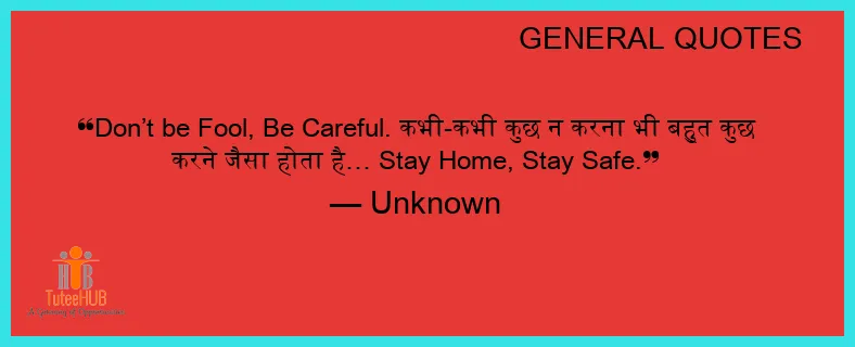 Don’t be Fool, Be CAREFUL. कभी-कभी कुछ न करना भी बहुत कुछ करने जैसा होता है… Stay Home, Stay Safe.