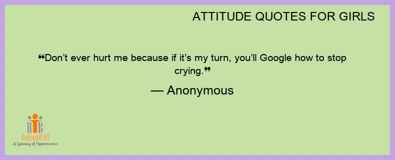 Don’t ever hurt me because if it’s my turn, you’ll Google how to stop crying.