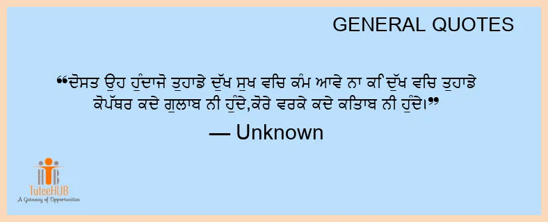 ਦੋਸਤ ਉਹ ਹੁੰਦਾਜੋ ਤੁਹਾਡੇ ਦੁੱਖ ਸੁਖ ਵਿਚ ਕੰਮ ਆਵੇ ਨਾ ਕਿ ਦੁੱਖ ਵਿਚ ਤੁਹਾਡੇ ਕੋਪੱਥਰ ਕਦੇ ਗੁਲਾਬ ਨੀਂ ਹੁੰਦੇ,ਕੋਰੇ ਵਰਕੇ ਕਦੇ ਕਿਤਾਬ ਨੀਂ ਹੁੰਦੇ।