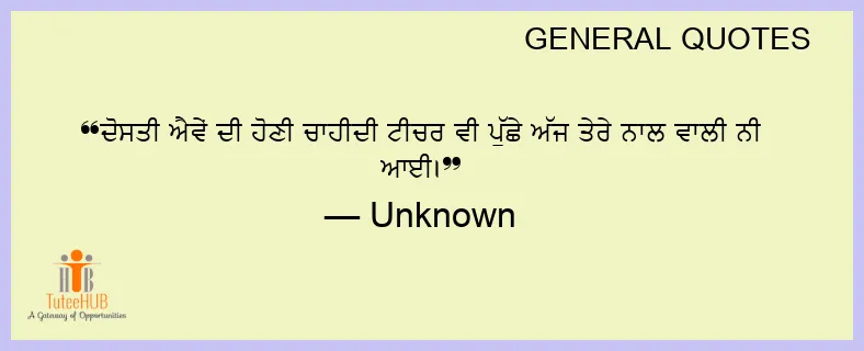 ਦੋਸਤੀ ਐਵੇਂ ਦੀ ਹੋਣੀ ਚਾਹੀਦੀ ਟੀਚਰ ਵੀ ਪੁੱਛੇ ਅੱਜ ਤੇਰੇ ਨਾਲ ਵਾਲੀ ਨੀ ਆਈ।