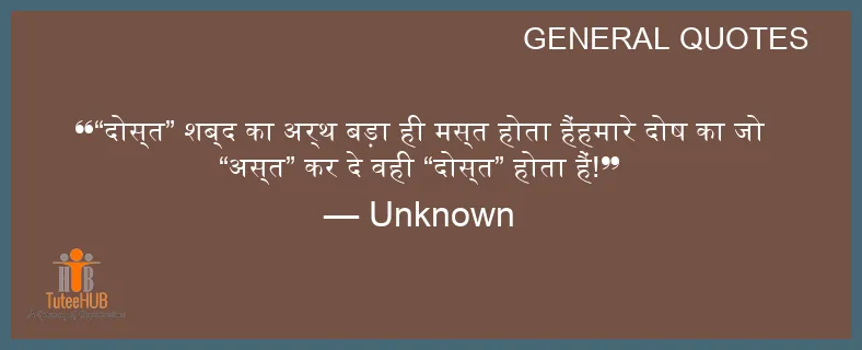 “दोस्त” शब्द का अर्थ बड़ा ही मस्त होता हैंहमारे दोष का जो “अस्त” कर दे वही “दोस्त” होता हैं!