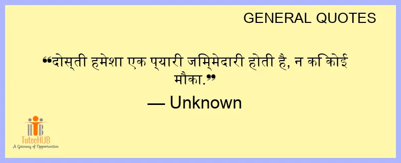 दोस्ती हमेशा एक प्यारी जिम्मेदारी होती है, न कि कोई मौका.