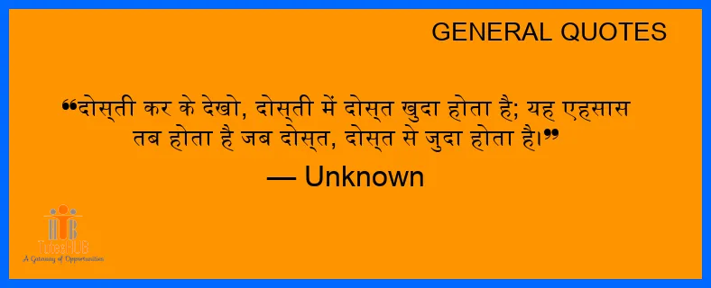 दोस्ती कर के देखो, दोस्ती में दोस्त खुदा होता है; यह एहसास तब होता है जब दोस्त, दोस्त से जुदा होता है।