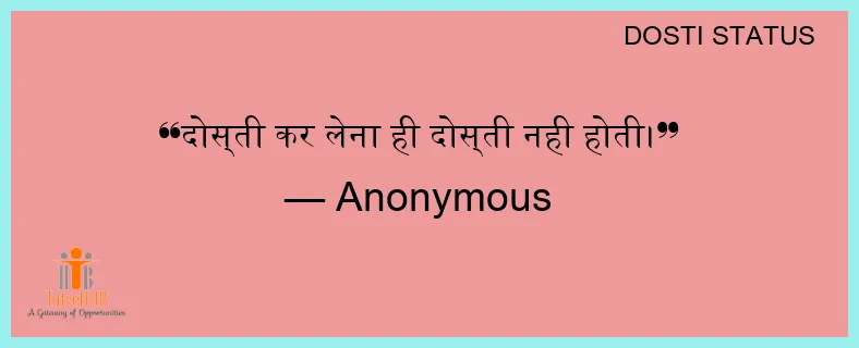 दोस्ती कर लेना ही दोस्ती नही होती।