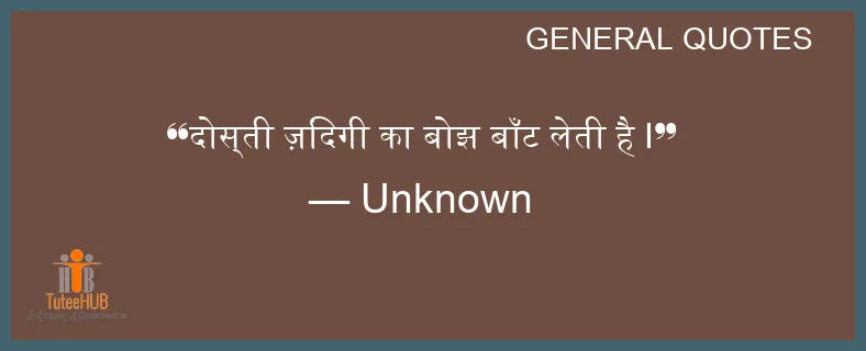 दोस्ती ज़िंदगी का बोझ बाँट लेती है I