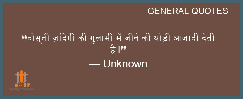 दोस्ती ज़िंदगी की गुलामी में जीने की थोड़ी आजादी देती है I