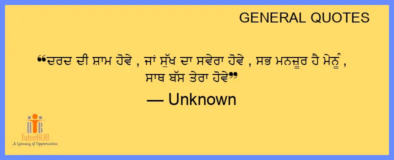 ਦਰਦ ਦੀ ਸ਼ਾਮ ਹੋਵੇ , ਜਾਂ ਸੁੱਖ ਦਾ ਸਵੇਰਾ ਹੋਵੇ , ਸਭ ਮਨਜ਼ੂਰ ਹੈ ਮੇਨੂੰ , ਸਾਥ ਬੱਸ ਤੇਰਾ ਹੋਵੇ