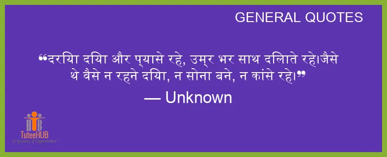 दरिया दिया और प्यासे रहे, उम्र भर साथ दिलाते रहे।जैसे थे वैसे न रहने दिया, न सोना बने, न कांसे रहे।