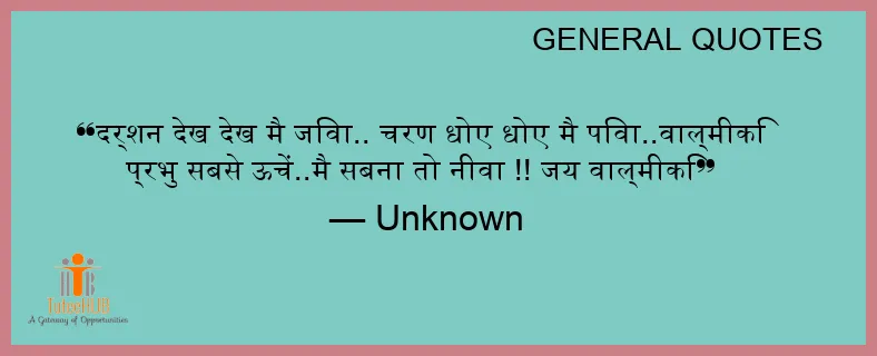दर्शन देख देख मै जिवा.. चरण धोए धोए मै पिवा..वाल्मीकि प्रभु सबसे ऊचें..मै सबना तो नीवा !! जय वाल्मीकि