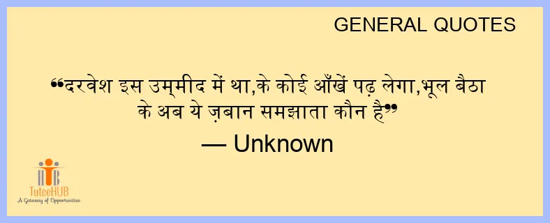दरवेश इस उम्मीद में था,के कोई आँखें पढ़ लेगा,भूल बैठा के अब ये ज़बान समझाता कौन है