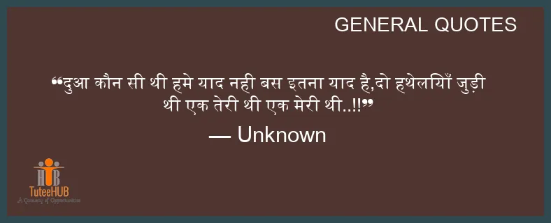 दुआ कौन सी थी हमे याद नही बस इतना याद है,दो हथेलियाँ जुड़ी थी एक तेरी थी एक मेरी थी..!!