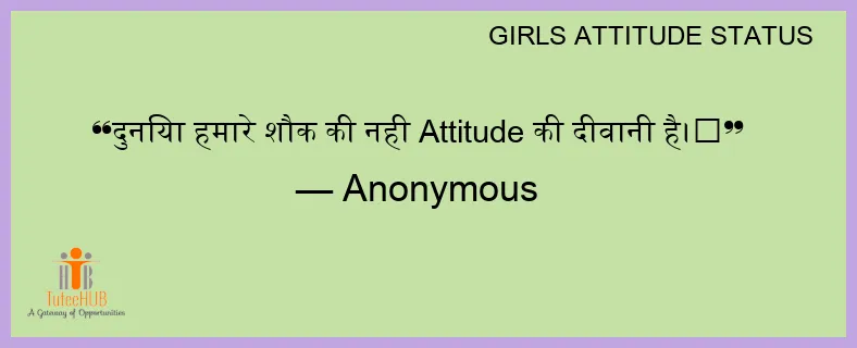 दुनिया हमारे शौक की नही Attitude की दीवानी है।😎