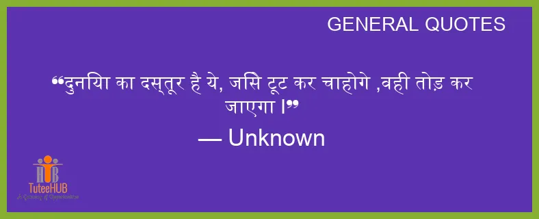 दुनिया का दस्तूर है ये, जिसे टूट कर चाहोगे ,वही तोड़ कर जाएगा I