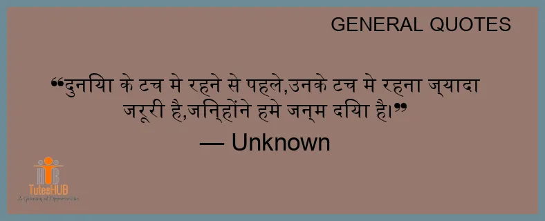 दुनिया के टच मे रहने से पहले,उनके टच मे रहना ज्यादा जरूरी है,जिन्होंने हमे जन्म दिया है।