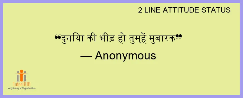 दुनिया की भीड़ हो तुम्हें मुबारक