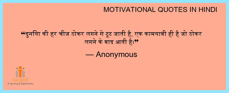 दुनिया की हर चीज ठोकर लगने से टूट जाती है, एक कामयाबी ही है जो ठोकर लगने के बाद आती है।