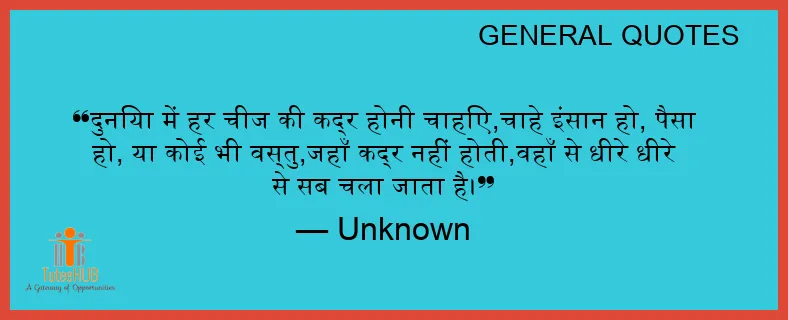 दुनिया में हर चीज की कद्र होनी चाहिए,चाहे इंसान हो, पैसा हो, या कोई भी वस्तु,जहाँ कद्र नहीं होती,वहाँ से धीरे धीरे से सब चला जाता है।