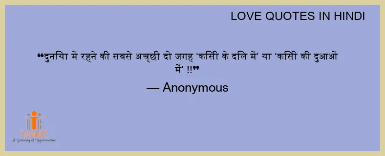 दुनिया में रहने की सबसे अच्छी दो जगह ‘किसी के दिल में’ या ‘किसी की दुआओं में’ !!