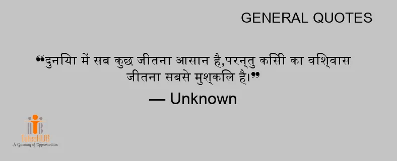 दुनिया में सब कुछ जीतना आसान है,परन्तु किसी का विश्वास जीतना सबसे मुश्किल है।