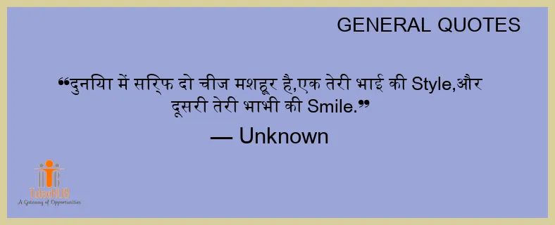 दुनिया में सिर्फ दो चीज मशहूर है,एक तेरी भाई की Style,और दूसरी तेरी भाभी की Smile.