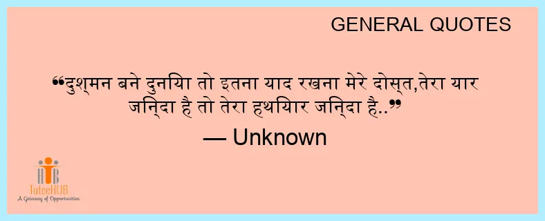 दुश्मन बने दुनिया तो इतना याद रखना मेरे दोस्त,तेरा यार जिन्दा है तो तेरा हथियार जिन्दा है..