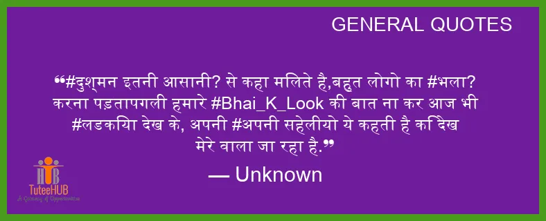 #दुश्मन इतनी आसानी? से कहा मिलते है,बहुत लोगो का #भला? करना पड़तापगली हमारे #Bhai_K_Look की बात ना कर आज भी #लडकिया देख के, अपनी #अपनी सहेलीयो ये कहती है कि देख मेरे वाला जा रहा है.