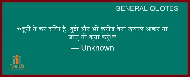 दूरी ने कर दिया है, तुझे और भी क़रीब तेरा ख्याल आकर ना जाए तो क्या करूँ।