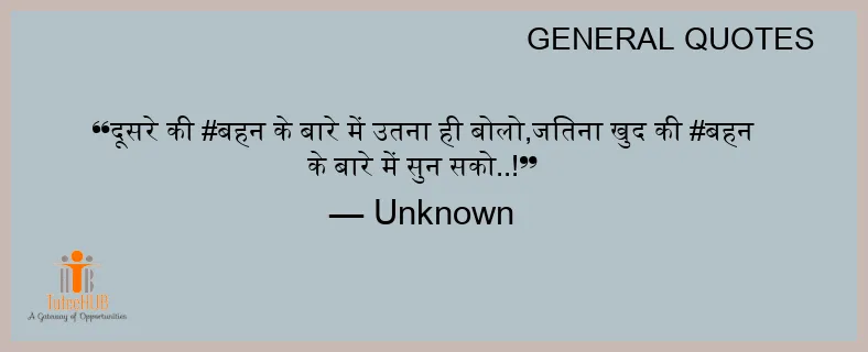 दूसरे की #बहन के बारे में उतना ही बोलो,जितना खुद की #बहन के बारे में सुन सको..!