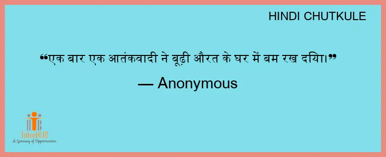 एक बार एक आतंकवादी ने बूढ़ी औरत के घर में बम रख दिया।