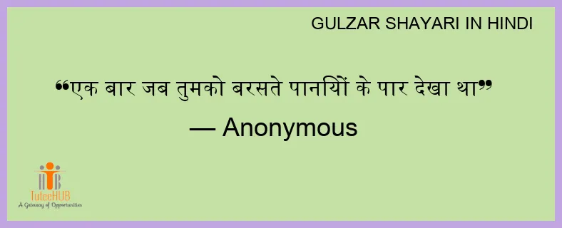 एक बार जब तुमको बरसते पानियों के पार देखा था