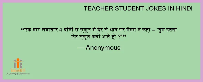 एक बार लगातार 4 दिनों से स्कूल में देर से आने पर मैडम ने कहा – “तुम इतना लेट स्कूल क्यों आते हो ?”