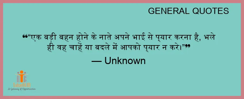 “एक बड़ी बहन होने के नाते अपने भाई से प्यार करना है, भले ही वह चाहें या बदले में आपको प्यार न करे।”