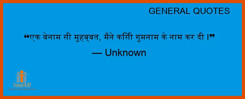 एक बेनाम सी मुहब्बत, मैंने किसी गुमनाम के नाम कर दी I
