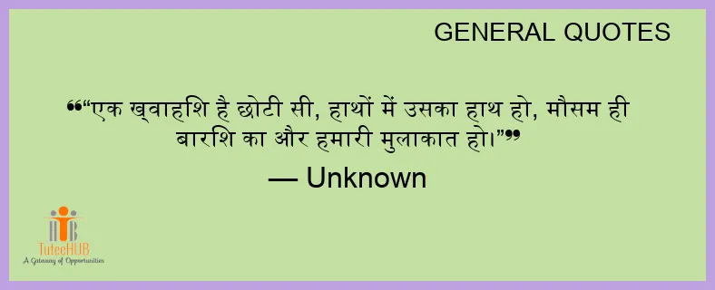 “एक ख्वाहिश है छोटी सी, हाथों में उसका हाथ हो, मौसम ही बारिश का और हमारी मुलाकात हो।”