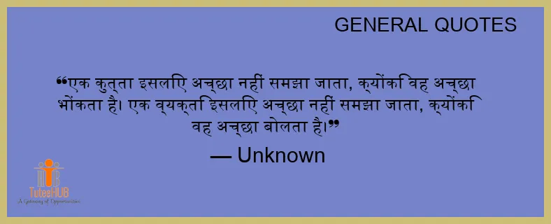 एक कुत्ता इसलिए अच्छा नहीं समझा जाता, क्योंकि वह अच्छा भोंकता है। एक व्यक्ति इसलिए अच्छा नहीं समझा जाता, क्योंकि वह अच्छा बोलता है।