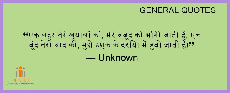 एक लहर तेरे ख़्यालों की, मेरे वजूद को भिगो जाती हैं, एक बूंद तेरी याद की, मुझे इश़्क के दरिया में डुबो जाती हैं।