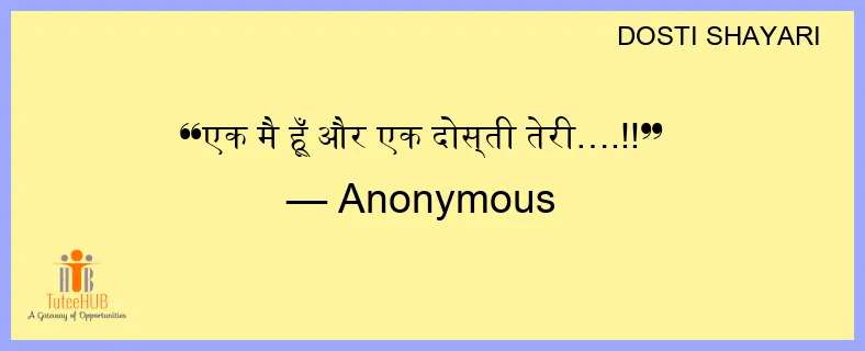 एक मै हूँ और एक दोस्ती तेरी….!!