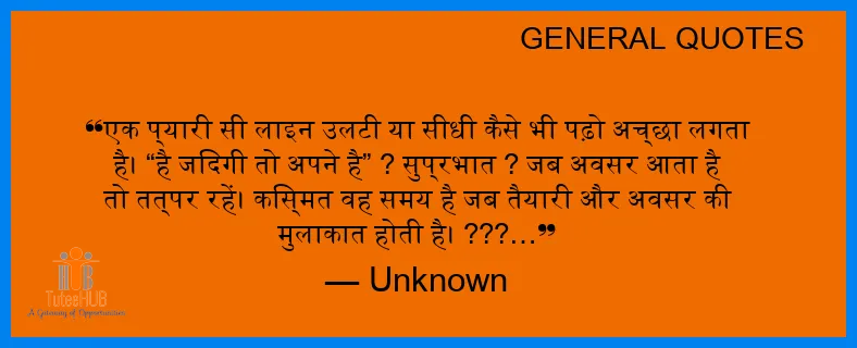 एक प्यारी सी लाइन उलटी या सीधी कैसे भी पढ़ो अच्छा लगता है। “है जिंदगी तो अपने है” ? सुप्रभात ? जब अवसर आता है तो तत्पर रहें। किस्मत वह समय है जब तैयारी और अवसर की मुलाकात होती है। ???…