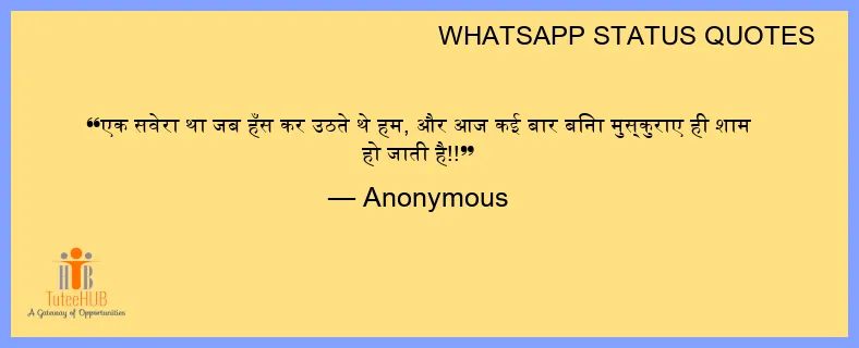 एक सवेरा था जब हँस कर उठते थे हम, और आज कई बार बिना मुस्कुराए ही शाम हो जाती है!!