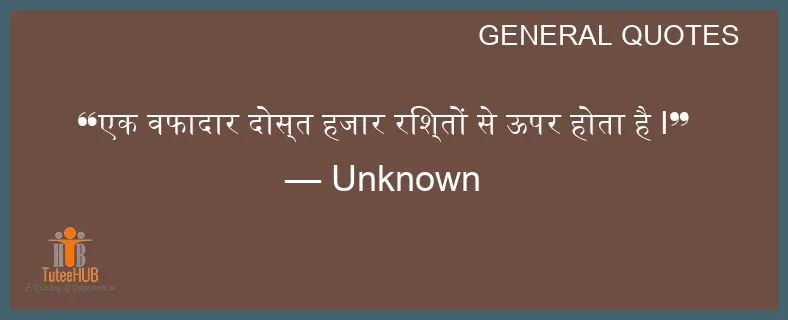 एक वफादार दोस्त हजार रिश्तों से ऊपर होता है I