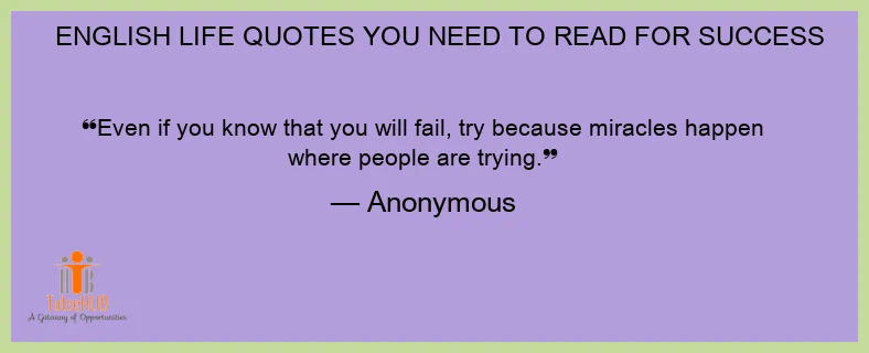 Even if you know that you will fail, try because miracles happen where people are trying.