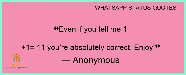 Even if you tell me 1+1= 11 you’re absolutely correct, Enjoy!