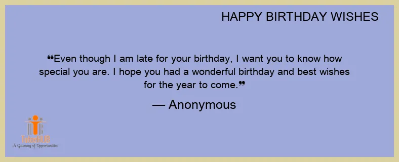 Even though I am late for your birthday, I want you to know how special you are. I hope you had a wonderful birthday and best wishes for the year to come.