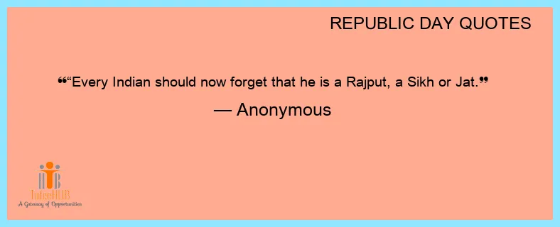 “Every Indian should now forget that he is a Rajput, a Sikh or Jat.
