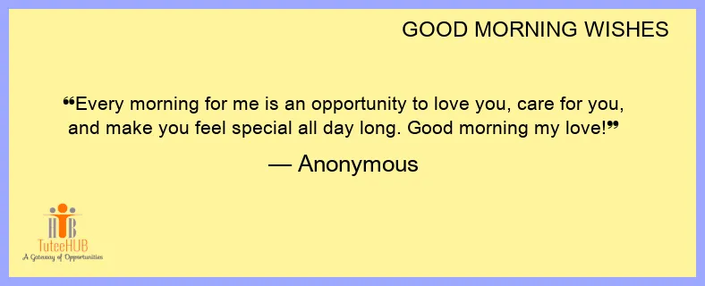Every morning for me is an opportunity to love you, care for you, and make you feel special all day long. Good morning my love!