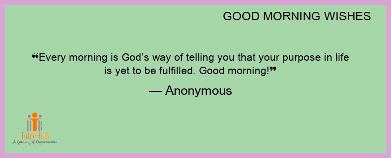Every morning is God’s way of telling you that your purpose in life is yet to be fulfilled. Good morning!